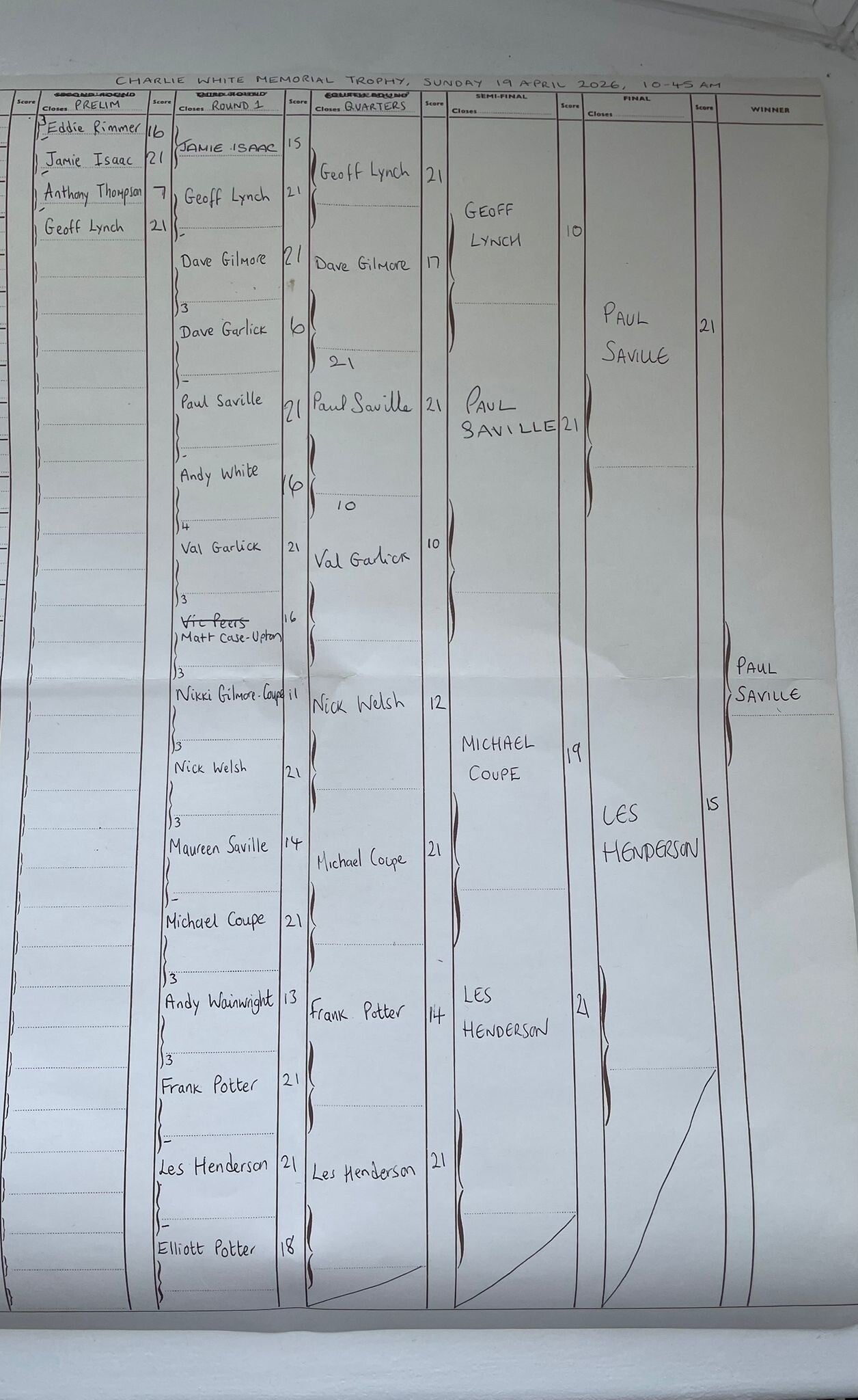 Winner: MR PAUL SAVILLE Runner Up: LES HENDERSON